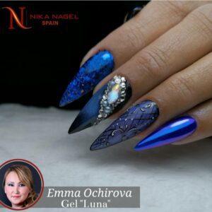 Los geles LUNA se aplican de manera ideal en una sola capa debido a su textura y profundos tonos. La composición única del gel cuando se usa un imán da un efecto sorprendente de la «trayectoria lunar» y, cuando se dispersa, los geles adquieren un brillo cromado magnético. Los geles LUNA crean un patrón tridimensional pintoresco llamando la atención de los demás de alrededor.
