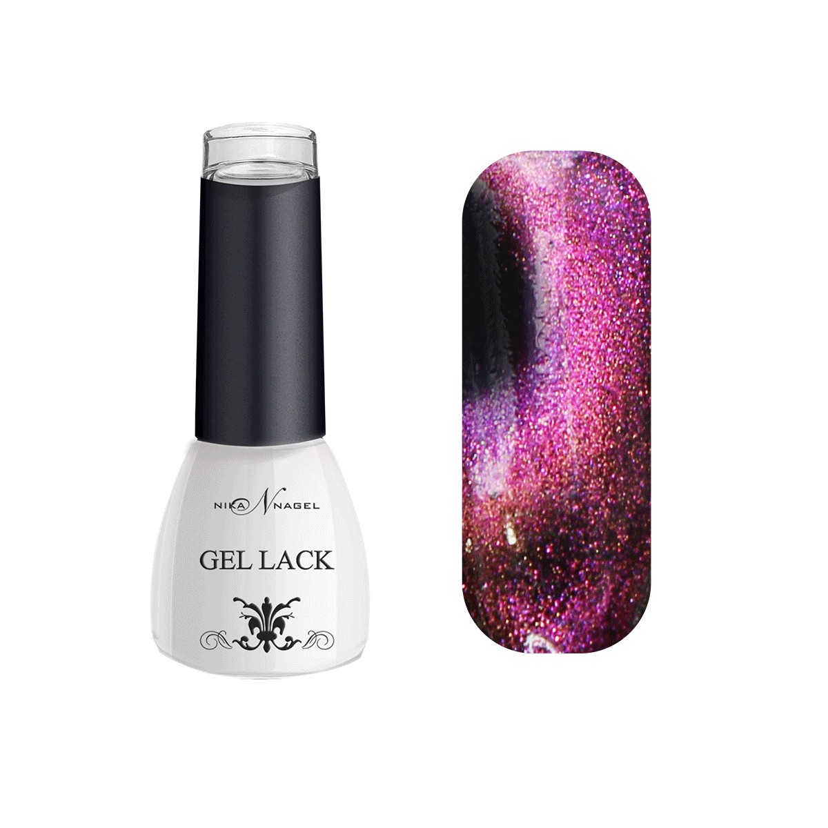 Esmalte semipermanente de efecto holográfico doble línea magnético.